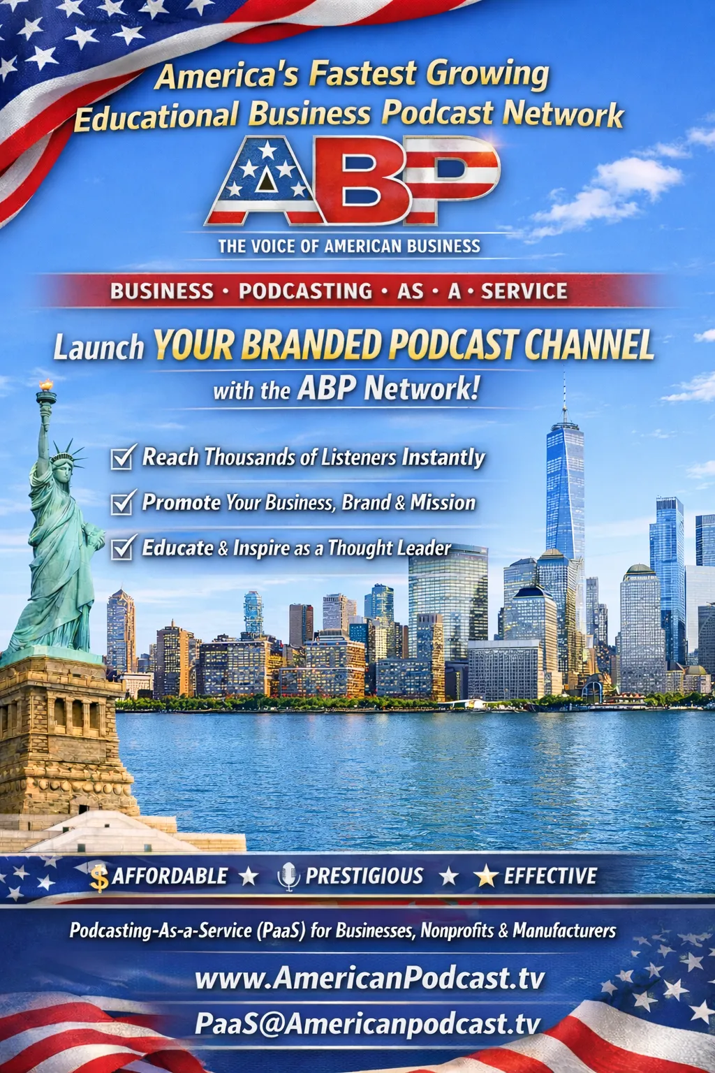 The American Business Podcast (ABP) is a live-first, independent, unfiltered, informative and non-political American Business Podcast to share educational business content with Today's and Next Generation business professionals, leaders, executives, entrepreneurs, business-owners, investors, educators, workforce and businesses. ABP supports, promotes and uplifts American Businesses, Nonprofits, Manufacturers and the Business Community. We are America's business community in the age of AI.